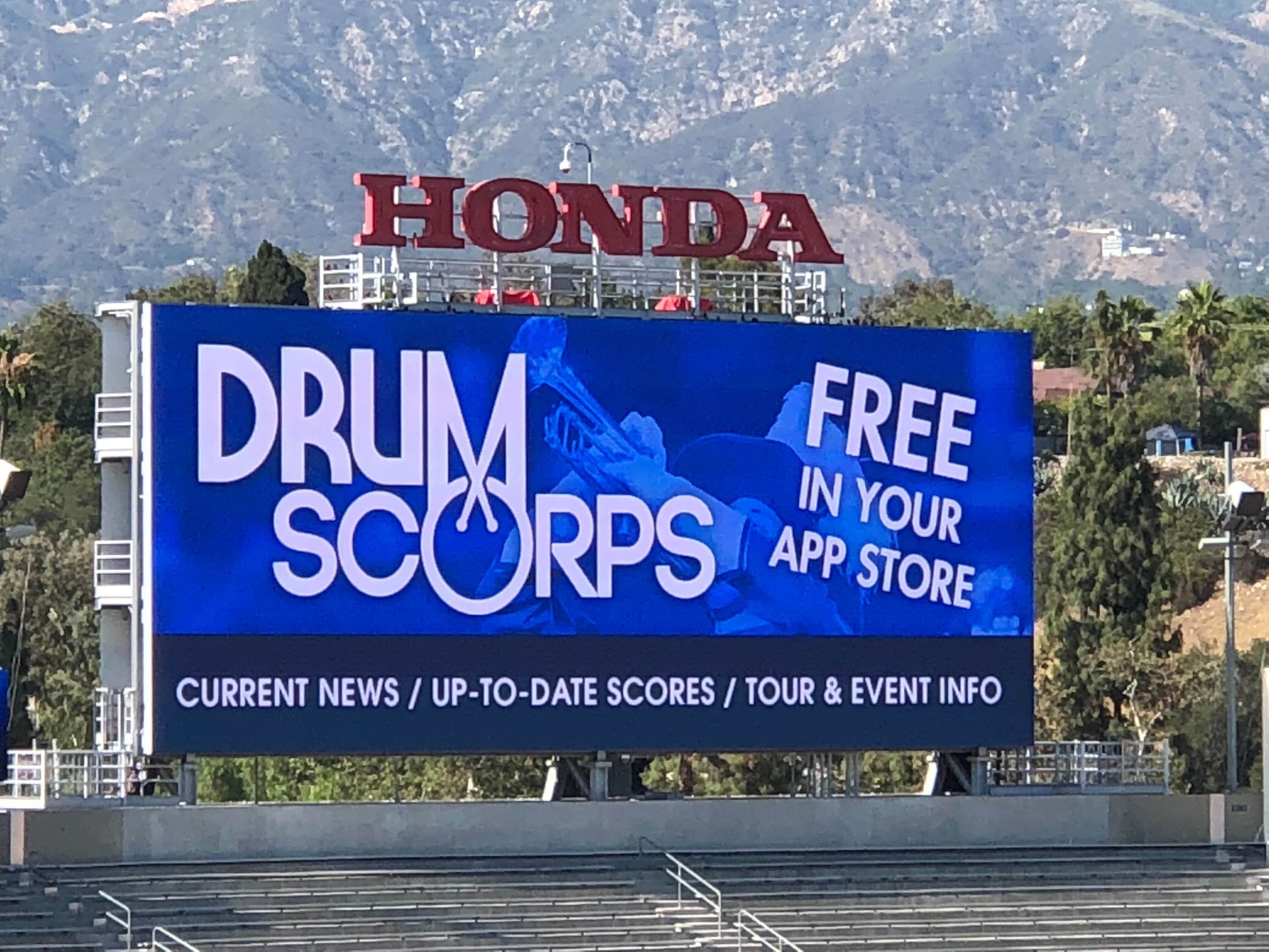 A week or so into the season, we were lucky enough to be able to run an advertisement banner on the jumbtron at the Rose Bowl in Pasedena, CA during the annual drum corps show at the stadium. To see all the hard work that had been put into the app displayed on the big screen at a big time drum corps event was amazing. I think we had close to a thousand downloads on that single night alone.