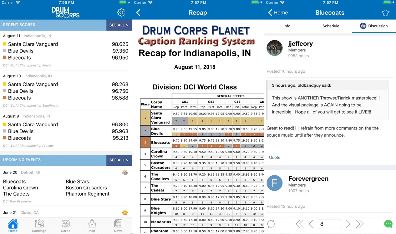 Fast forward several months and the beginning of the 2015 drum corps season was just a couple weeks away. The winter months had been spent working closely with the Drum Corps Planet team to finish out the iOS and Android versions of the app and integrate with their API. This API brought a number of new features to the app including rankings, recaps, and push notifications. We officially announced the new, rebranded DrumScorps app just a few days before the first show of the 2015 season. The response was better than we could have ever hoped for.
